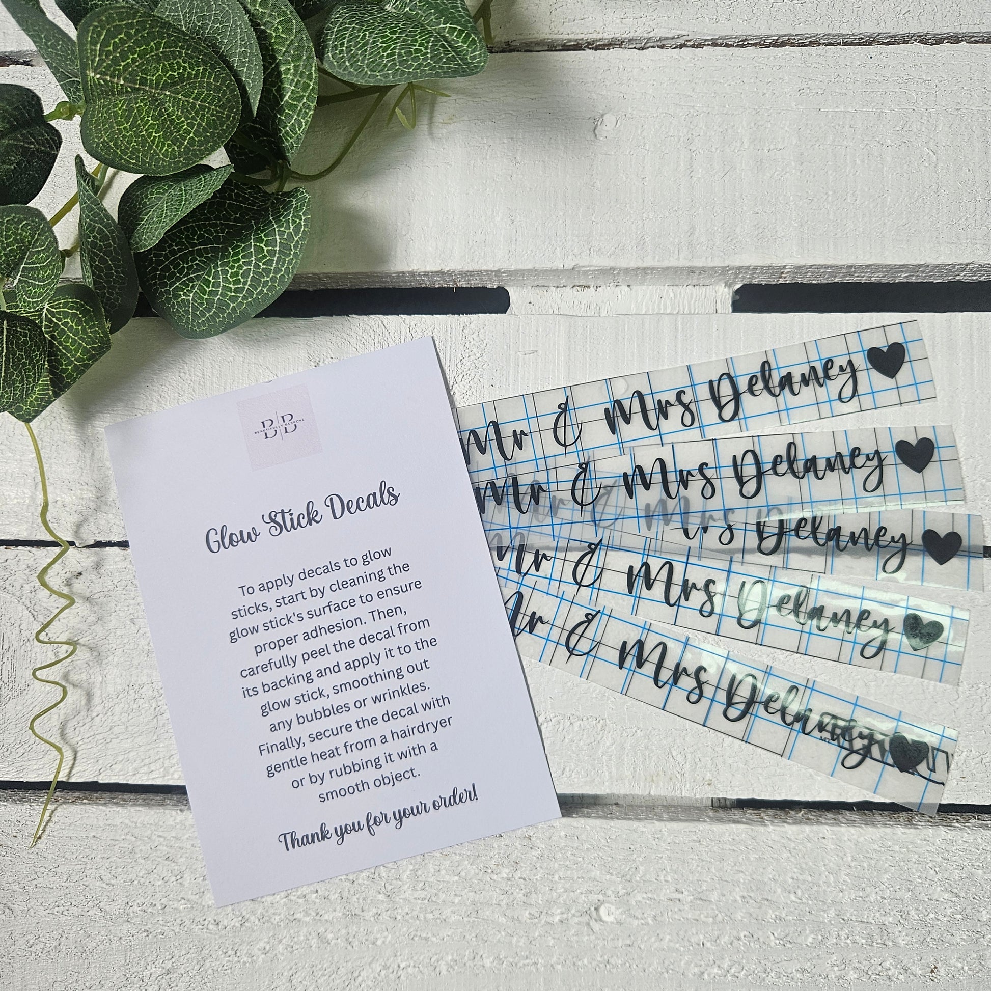 Your decals will come with easy to follow instructions on how to apply and if you are ordering more than 50 decals you will receive a FREE A6 Let Love Glow Sign.