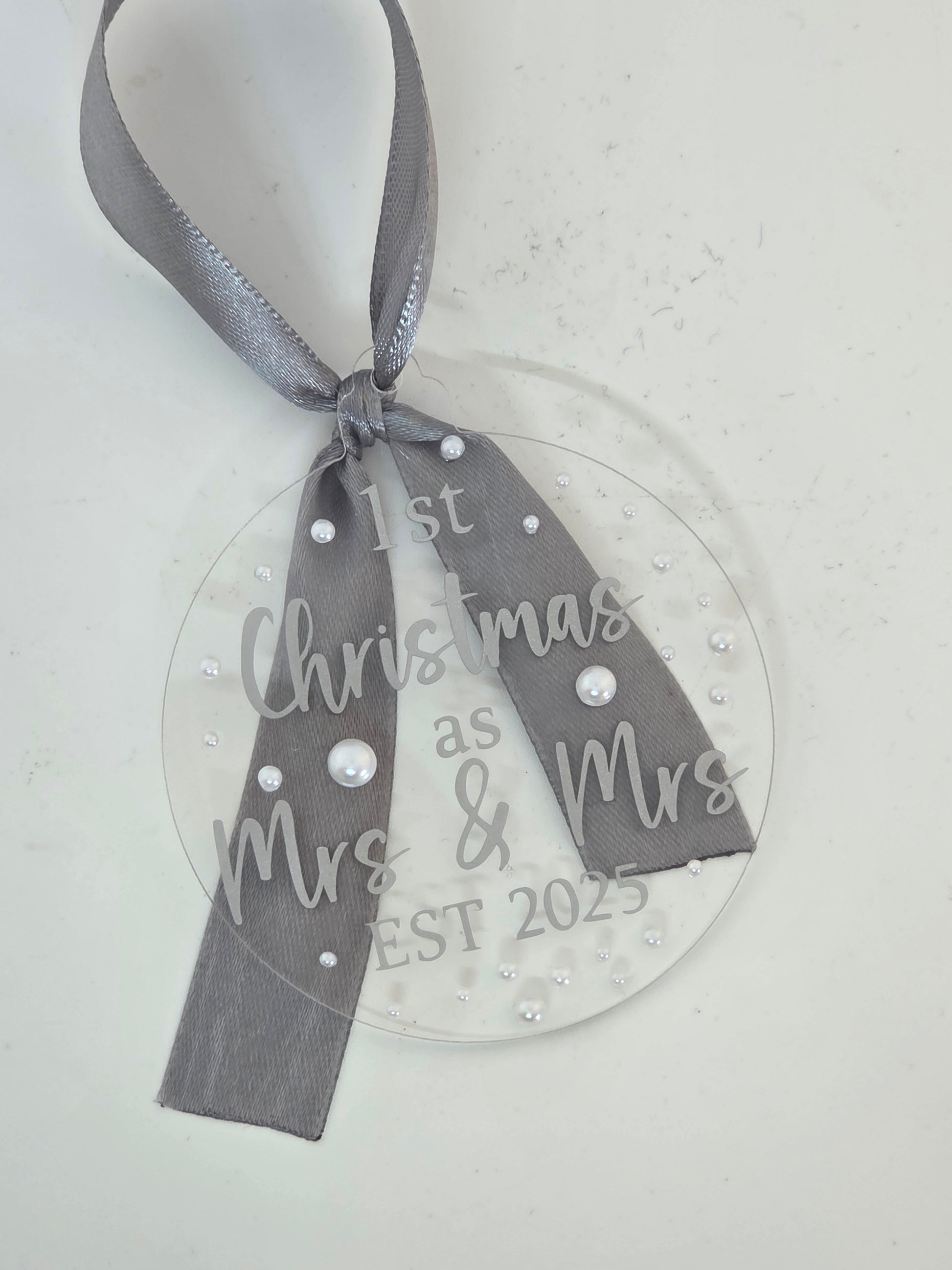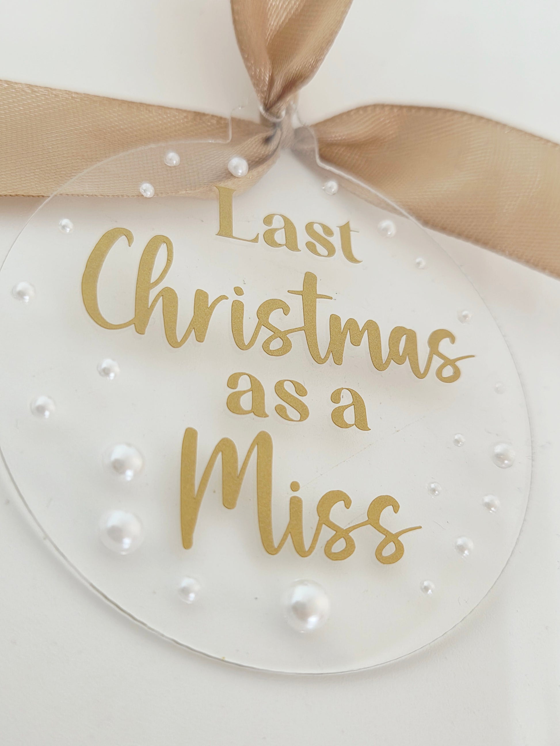 Last Christmas As A Miss or First Christmas Married Pearl Tree Decoration