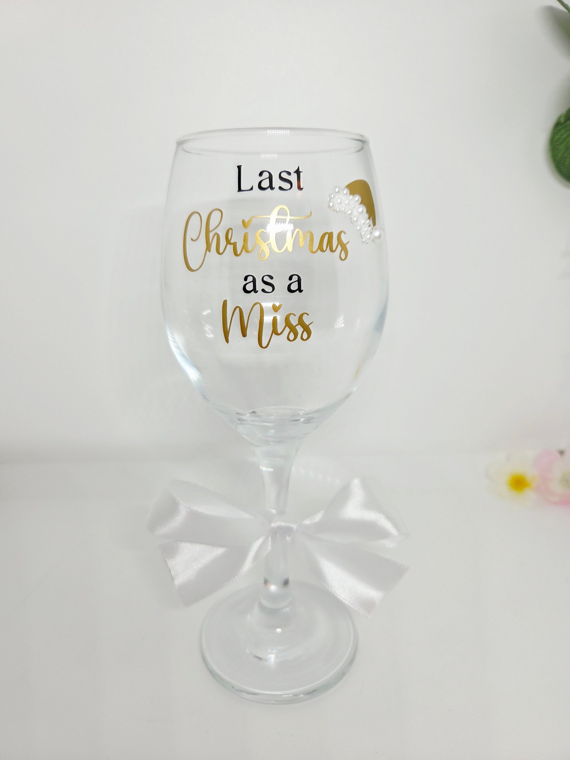 Last Christmas As A Miss Pearl Design Wine Glass